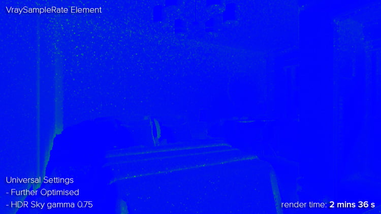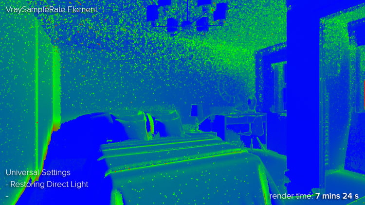 Универсальные настройки. Я предпочёл работать в режиме универсальных настроек vray, поэтому для того чтобы проделать большинство моих тестов, я переключился на эти настройки. Конечно же это заняло много времени на рендеринг, но это помогло мне оптимизировать сцену. Я переключусь на Irradiance map позже, чтобы показать его для сравнения.