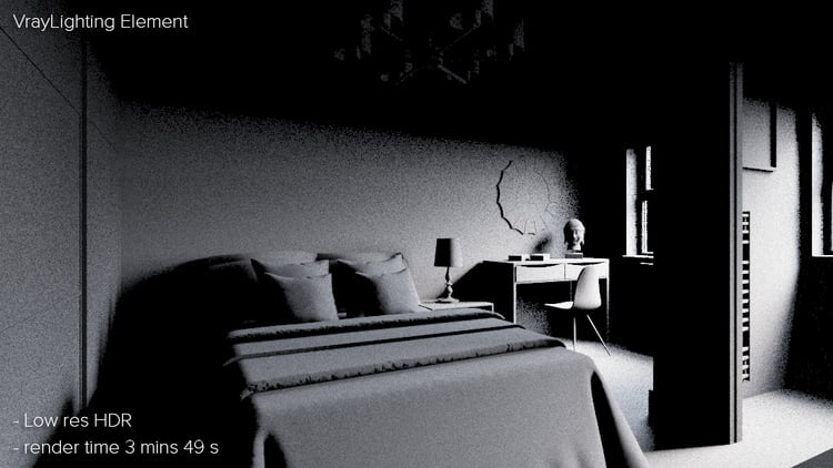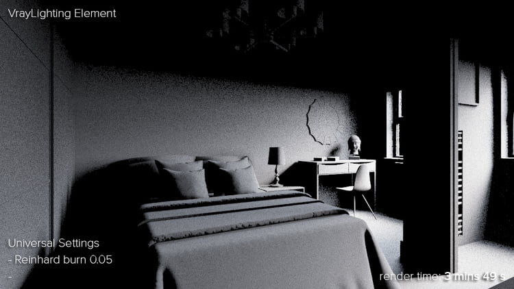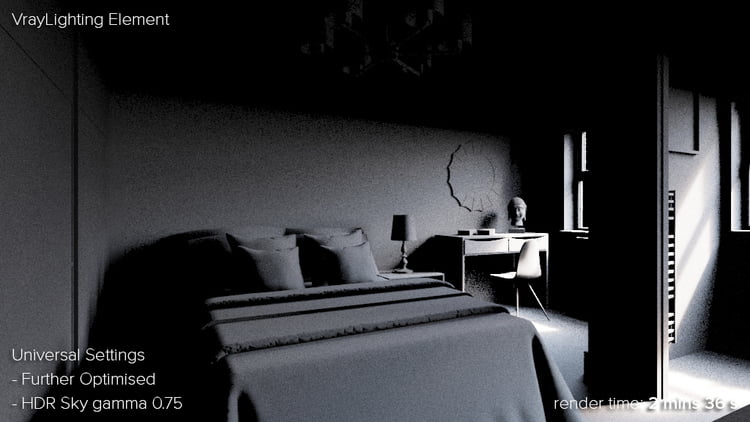 Теперь, просмотрев vraylighting element, я узнал, что там практически не было прямого освещения, проходившего через окно. Чтобы исправить это, я: