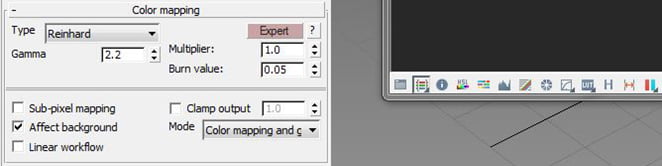 Таким образом получается, чтобы запечь гамму в ваше изображение, в этом случае вам нужно настроить ваши параметры vray color mapping примерно как здесь