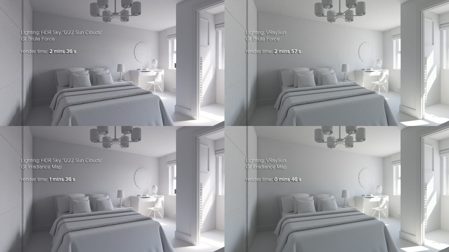 Освещение HDR, VRaySun, Brute Force и Irradiance Map в сравнении